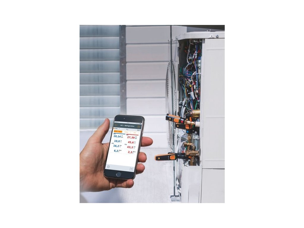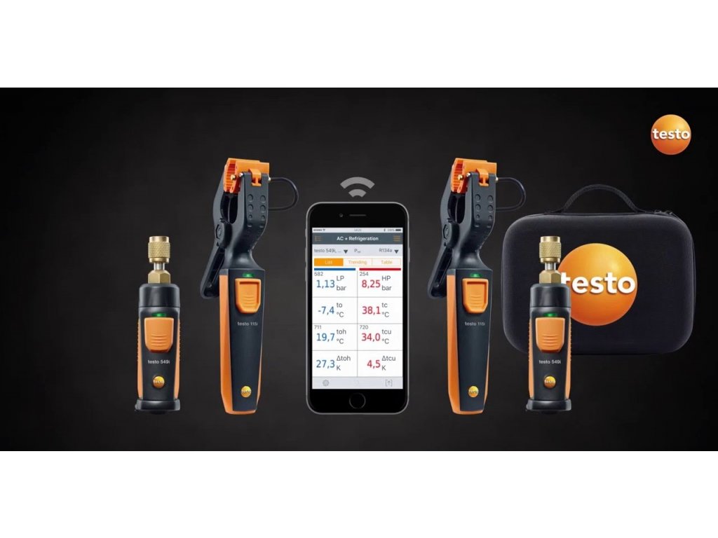 Kompaktný set chladenia obsahuje prístroj na meranie vysokého tlaku testo 549i a kliešťový teplomer testo 115i (každý prístroj dvakrát). V kombinácii so smartphone-om alebo tabletom, sú vhodné na detekciu porúch u klimatizačných a chladiacich systémov, obsluhu daných systémov a zároveň aj pre ich uvedenie do prevádzky. Oba meracie prístroje je možné rýchlo a jednoducho pripojiť priamo k tlakovej prípojke. Pri práci s tlakovými prípojkami, ktoré sú ďaleko od seba, testo 549i celý proces merania značne zjednodušuje – vďaka Bluetooth spojeniu so smartphonom alebo tabletom. Ďalšia výhoda: keďže na meranie nie sú potrebné žiadne hadice, stratí sa veľmi málo, alebo vôbec žiadne chladivo. A ak je zároveň použitý Bluetooth kliešťový teplomer testo 115i, je možné vypočítať jednotlivé parametre chladiaceho systému (napr. prehriatie).Vďaka aplikácii testo Smart Probes App nainštalovanej na Vašom mobilnom zariadení môžete pohodlne odčítať namerané hodnoty. Aplikácia naviac ponúka automatický výpočet výparnej a kondenzačnej teploty. Všetky namerané udaje sú zobrazené vo forme grafu alebo tabuľky.Protokoly merania je potom možné zaslať rovno e-mailom vo formáte *.pdf alebo *.xls.